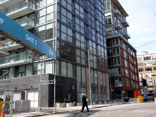 March 29 2011: The Charlie Condos construction site, left, Glas condos, center, and The Charlotte condos on the west side of Charlotte Street north of King.