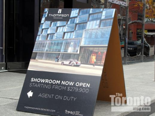 January 14 2011: The Thompson Residences showroom reflects buildings on the north side of King Street in this view, looking east along King