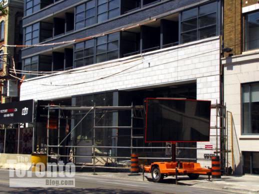 A project of Cresford Developments, Lofts 399 is being built on the south side of Adelaide Street between the two Quad Lofts condos, and will sit back-to-back to the new Victory Condos on King West. My February 20 2011 post has several photos showing earlier construction progress at Lofts 399 and its proximity to the other condos.