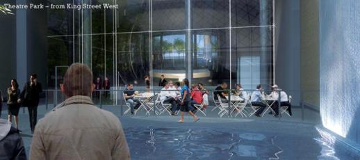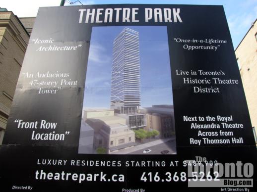 Theatre Park was designed by architectsAlliance of Toronto. The condo is a project of Lamb Development Corp., Niche Development and Harhay Construction Management Ltd.