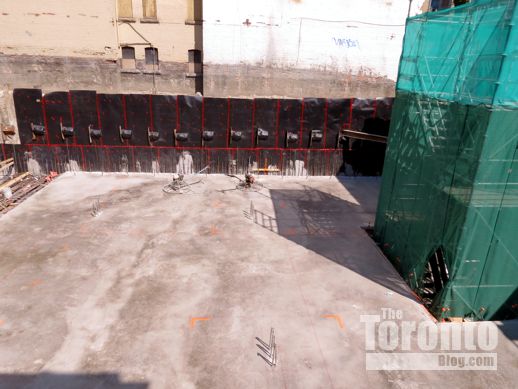 Looking up the north side of the Studio on Richmond condo tower situated between Simcoe and Duncan Streets in the Entertainment District. It will top off at 31 storeys. Its 41-storey sister tower, Studio2, is currently under construction behind it on Nelson Street.