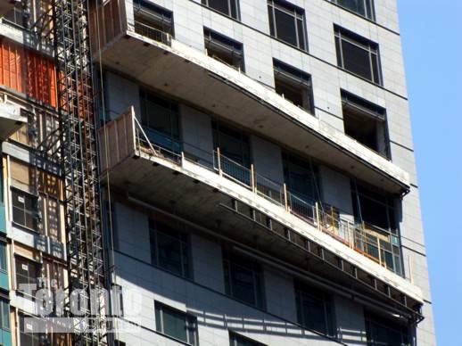 July 20 2011: The construction entrance to the 54th floor. The exterior elevator climbs a total of 55 floors