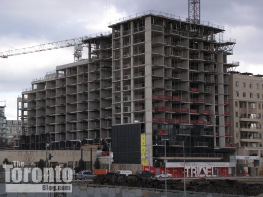Looking up the southeast corner of Tridel’s Three Hundred Front West condo. The building was designed by Toronto’s Wallman Architects.