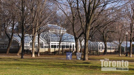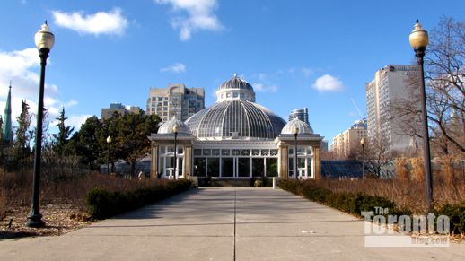 February 5 2012: The tower would rise behind the rear right side of the Allan Gardens Palm House, built in 1910, and would dominate the backdrop in this view