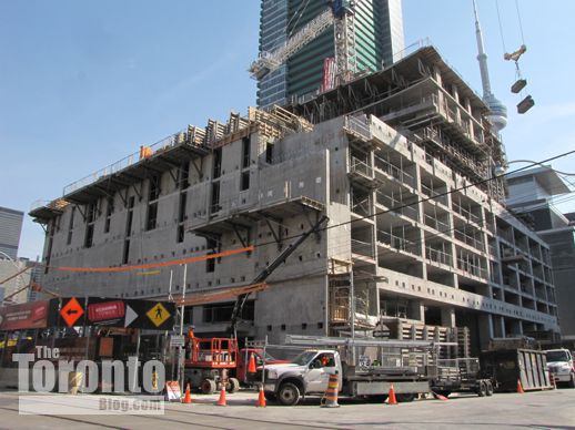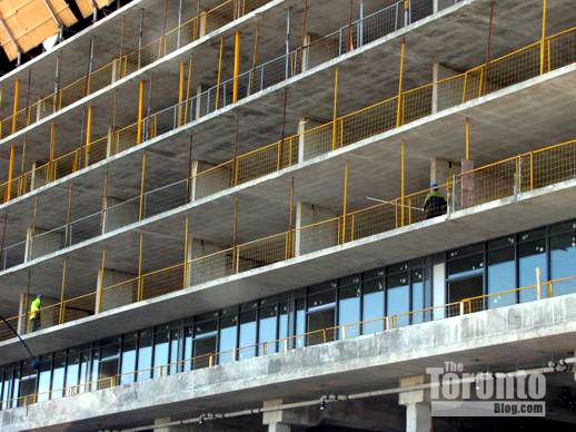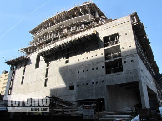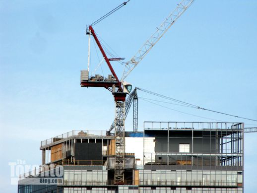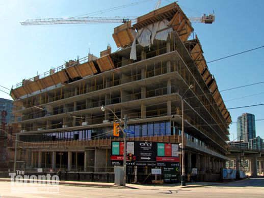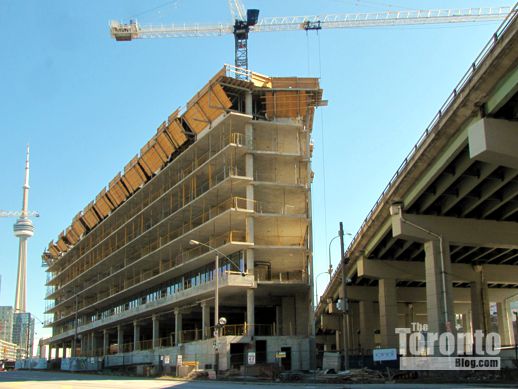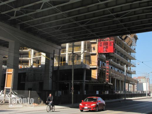 Towering over traffic: It seems my March 15 post and photos of the Garrison at the Yards condo project near Fort York piqued quite a bit of curiosity about new condo development that is taking place literally just a few feet from the shoulders of the elevated Gardiner Expressway. Some readers have asked if I could post pictures of other condo towers that stand equally close to the Gardiner, while on Sunday March 18 the Toronto Star published an article headlined: “Toronto condos: How close is too close to the Gardiner?”
