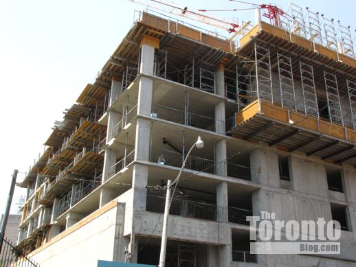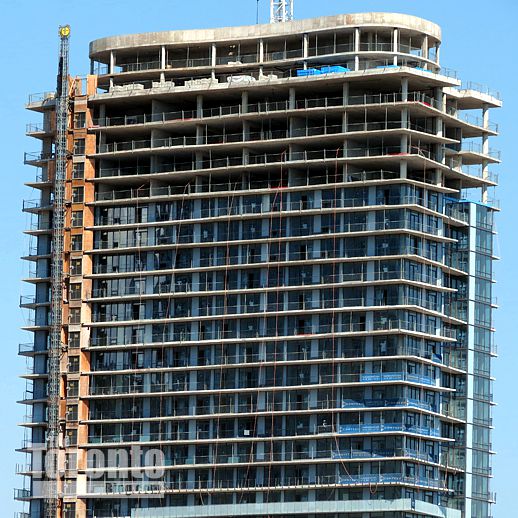 October 30 2011: Market Wharf condo tower construction viewed from the northeast corner of Jarvis Street and Lake Shore Boulevard.