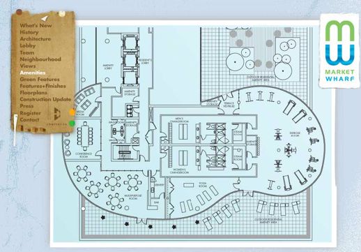 From the Market Wharf website, an illustration of the floorplan for the condo’s curvaceous Market Club amenities facility