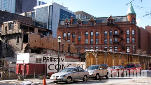The demolition site and the Gooderham Flatiron Building, seen February 3 2011