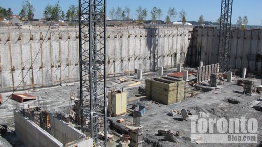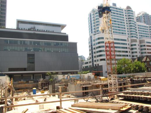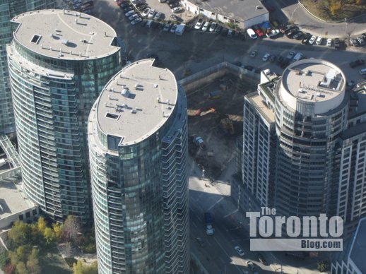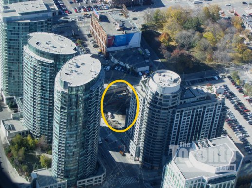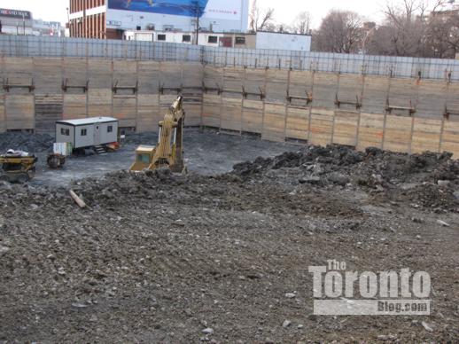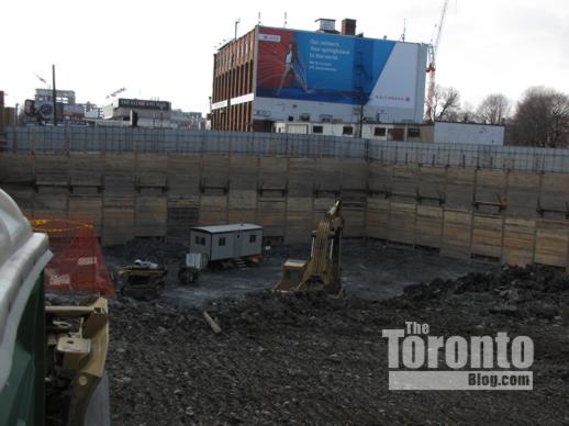 Below are photos I have taken of the condo sales office and excavation, along with several artistic building renderings that appear on the project’s website. (Some pics I’ve published previously can be viewed in this construction progress post from early January.)