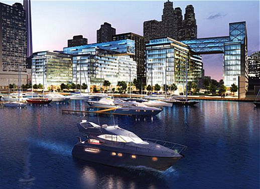 Though they are basically just pairs of mid-rise glass and steel boxes themselves, it’s the dramatic rooftop “skybridges” linking the 12-storey Pier 27 condo buildings that will give this project an interesting flair and unique bold style that should finally break the decades-old pattern of architectural monotony along Queen’s Quay boulevard.