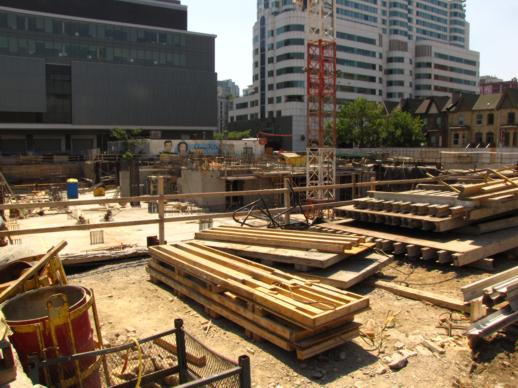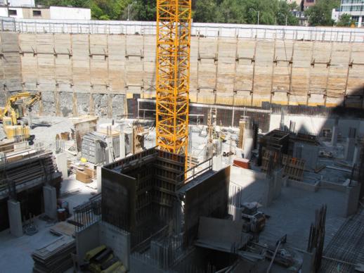 Below are photos I have taken of the condo sales office and excavation, along with several artistic building renderings that appear on the project’s website. (Some pics I’ve published previously can be viewed in this construction progress post from early January.)