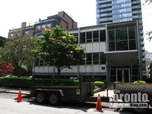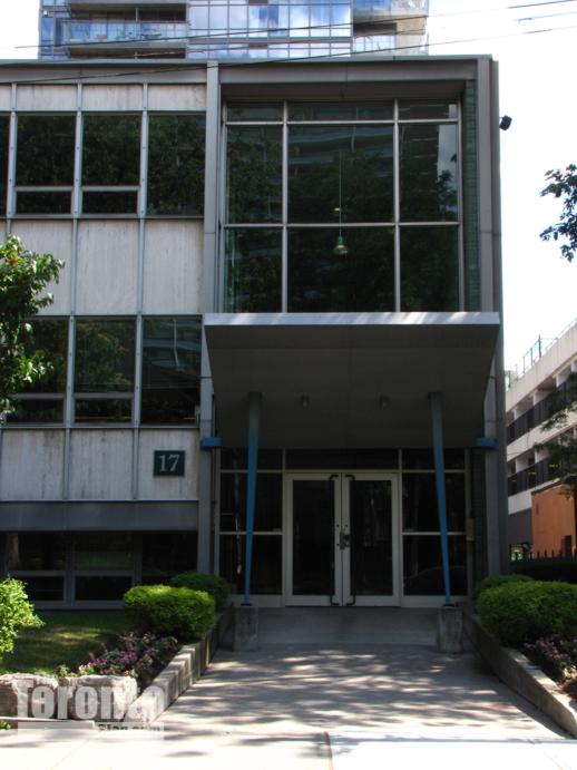 August 19 2011: This office building at 17 Dundonald Street was built in 1956. Included on the City’s inventory of heritage properties, it is considered culturally significant as an early example of the Modern style of architecture.