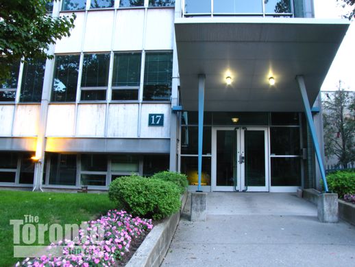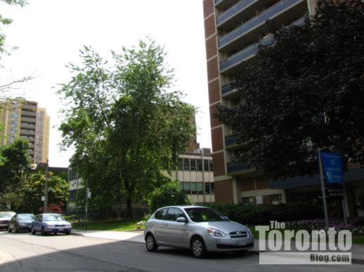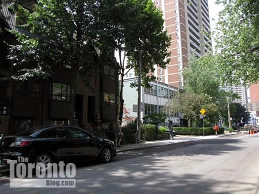 July 8 2011: Looking towards 17 Dundonald from the northwest, outside the Continental Tower apartment building at 15 Dundonald Street.