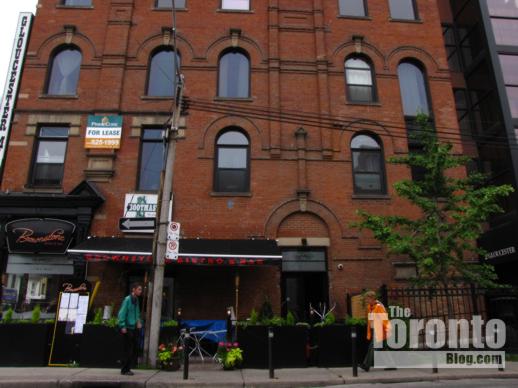 … the former Rawlinson Furniture warehouse, constructed in 1878 at 18 Gloucester Lane just east of Yonge Street between Gloucester & Isabella Streets