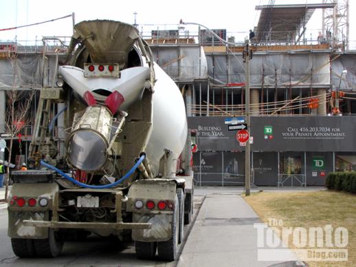 Below are several recent photos of construction equipment on the One Bloor property. Numerous tower renderings and a full architectural description of the building can be viewed at this page on the Hariri Pontarini website.