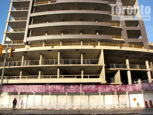 The St Thomas condo highrise site and sales office on the northwest corner of Charles and St Thomas Streets, right across the road from 77 Charles West
