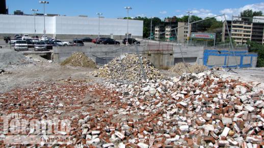 Going Up: Passersby can finally see the Seventy Seven Charles West luxury condo building taking shape, now that construction is reaching above ground on the first two floors.