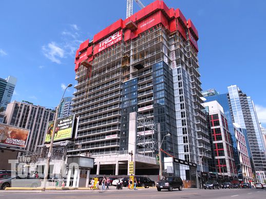 Catching glances: While Toronto’s iconic Flatiron Building continues to attract strong interest from tourists exploring the St Lawrence Market neighbourhood, The Berczy condo building across the street seems to be catching more attention from locals — especially now that construction has climbed several levels above grade.