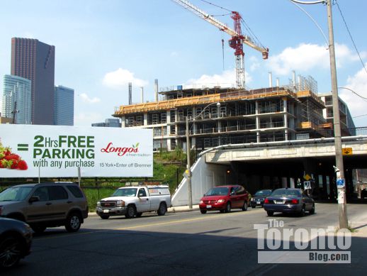 August 22 2011: Wooden hoarding was installed in place of the chain link fence that had surrounded the site while the gas station facilities and donut shop that previously occupied the property were being demolished