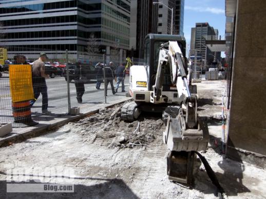 April 27 2011: Soil testing and utility service locating activity on St Nicholas Street, the western flank of the FIVE Condos construction site