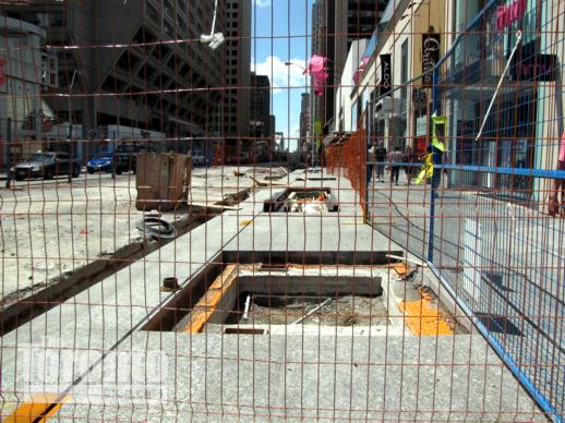 For the next several years, though, I’ll have to wait and watch while FIVE goes up. That should be equally interesting to follow. While crews dig a 19-meter-deep excavation on the construction site, the five-story facade of the Rawlinson building on St Joseph Street will have to be preserved and maintained. That means a steel support structure must be erected on the street to hold the wall in place. Although the five-storey west wall of the historical building on St Nicholas Street will be dismantled to allow for construction of the FIVE tower, it will be rebuilt. Since the developer needs construction staging areas, on-street parking spaces must be removed from the south side of St Joseph; meanwhile, the narrow (5.5-meter wide) stretch of St Nicholas between St Joseph and Phipps Street must be closed altogether for the duration of construction. The street closures and parking space removals could cost the developer $216,000 in fees payable to the city, full details of which are outlined in a March 30 2011 city report.
