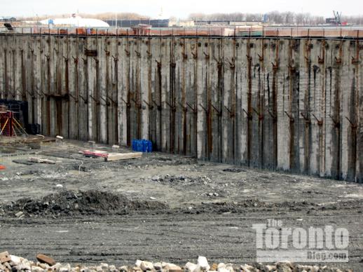 December 21 2010: Street-level view of the west wall of the FIVE Condos site on St Nicholas Street, just below St Joseph Street