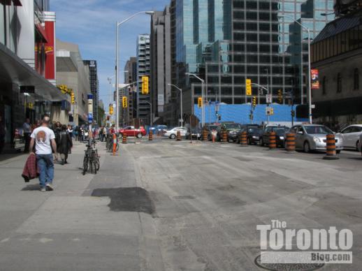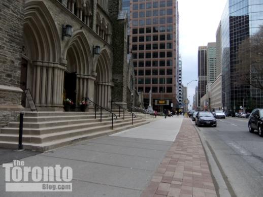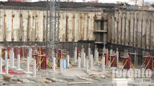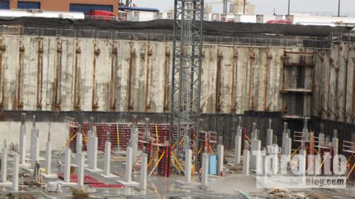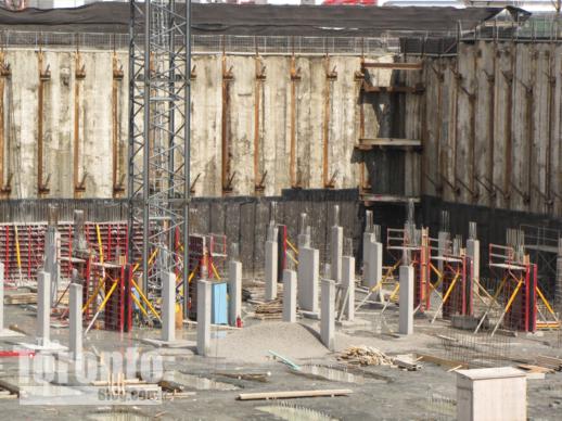 For the next several years, though, I’ll have to wait and watch while FIVE goes up. That should be equally interesting to follow. While crews dig a 19-meter-deep excavation on the construction site, the five-story facade of the Rawlinson building on St Joseph Street will have to be preserved and maintained. That means a steel support structure must be erected on the street to hold the wall in place. Although the five-storey west wall of the historical building on St Nicholas Street will be dismantled to allow for construction of the FIVE tower, it will be rebuilt. Since the developer needs construction staging areas, on-street parking spaces must be removed from the south side of St Joseph; meanwhile, the narrow (5.5-meter wide) stretch of St Nicholas between St Joseph and Phipps Street must be closed altogether for the duration of construction. The street closures and parking space removals could cost the developer $216,000 in fees payable to the city, full details of which are outlined in a March 30 2011 city report.