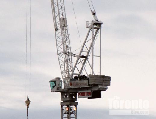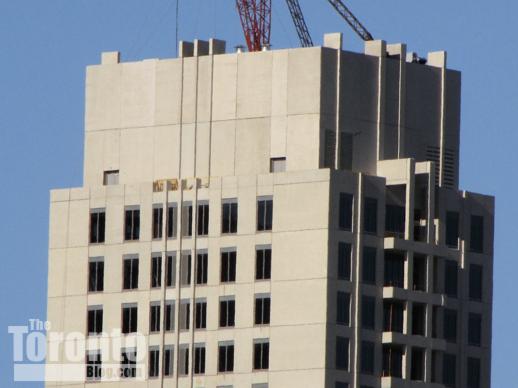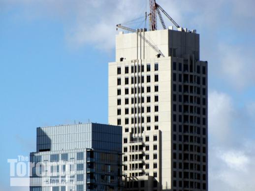 February 18 2011: Simcoe Street view of the cranes atop the PwC office tower