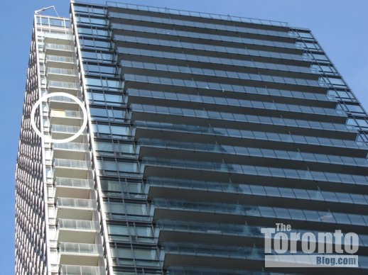 Balconies on the east side of One Park West condos