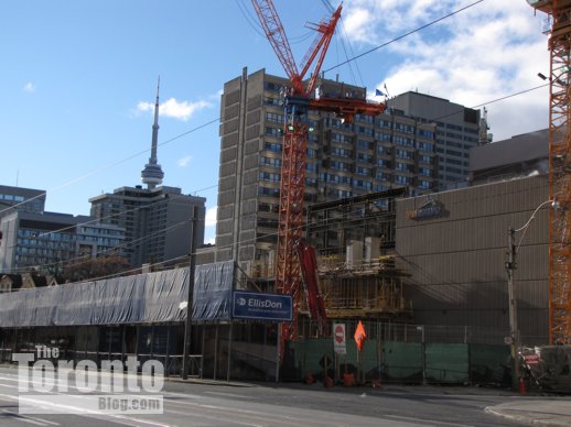 SickKids tower construction viewed from Bay Street below Gerrard Street