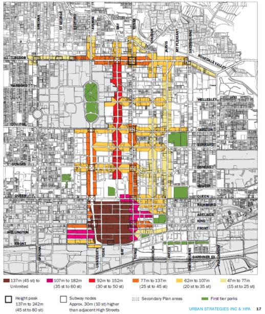 Toronto downtown vision height map, from the Tall Buildings Study webpage