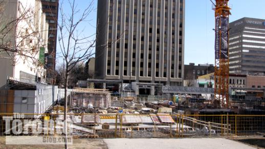 February 20: Street-level foundation work viewed from Yonge Street