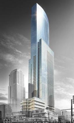 December 12 2011: Looking up the south side of the Aura podium from Gerrard Street, outside the Delta Chelsea Inn