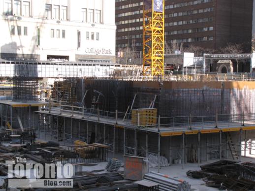 December 12 2011: A view of the podium’s northwest corner, looking towards the Delta Chelsea Inn on Gerrard Street