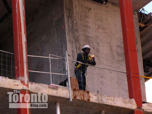 December 12 2011: An Aura construction worker looks out over Yonge Street while taking his lunch break on the podium’s fourth floor