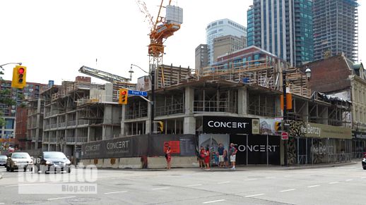 Now digging: The parking lot is long gone and the earth is starting to move at the southwest corner of Bay and Dundas, where Concert Properties Ltd. has begun building its latest rental apartment building, Motion on Bay Street.