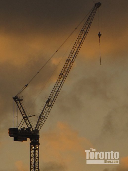 Lights, camera, crane!: A work crew was busy assembling a crane in the Cinema Tower excavation when I walked past the condo construction site at the southeast corner of Widmer and Adelaide Streets this afternoon.