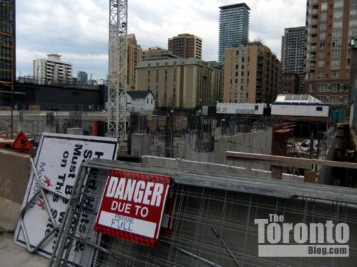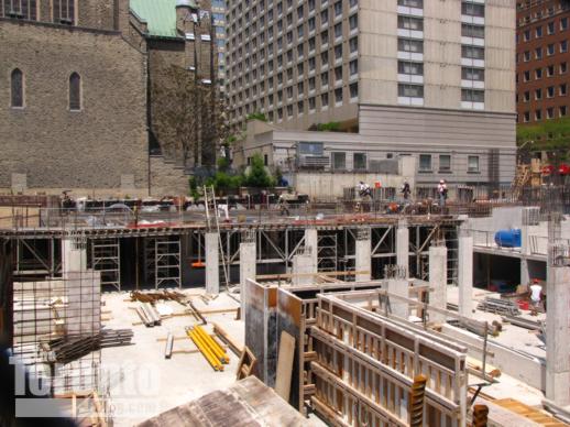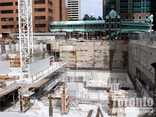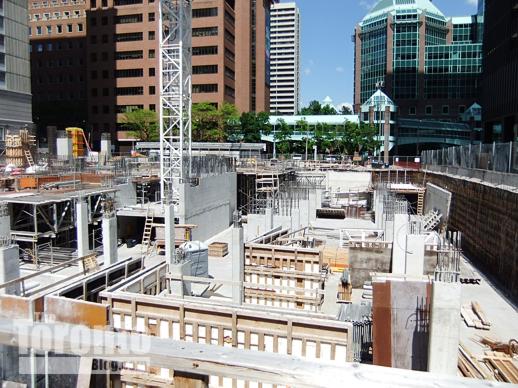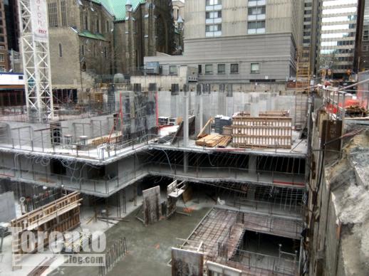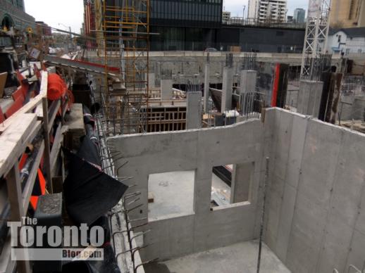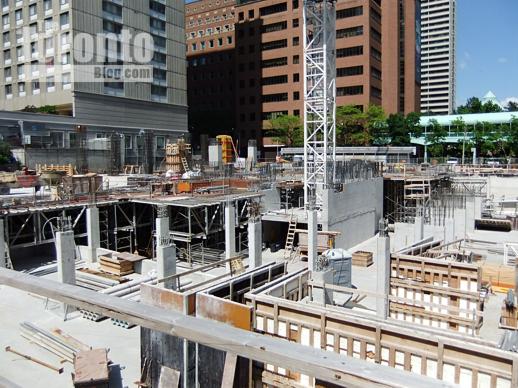 November 4 2011: Upper east floors (so far) overlooking Ted Rogers Way. Last Friday, construction crews were working on the 21st floor.
