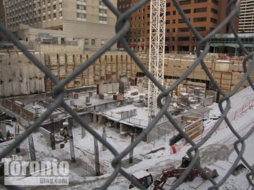 May 4 2011: Demolition progress viewed from the groundbreaking ceremony location, looking west toward the enormous Rogers Communications building
