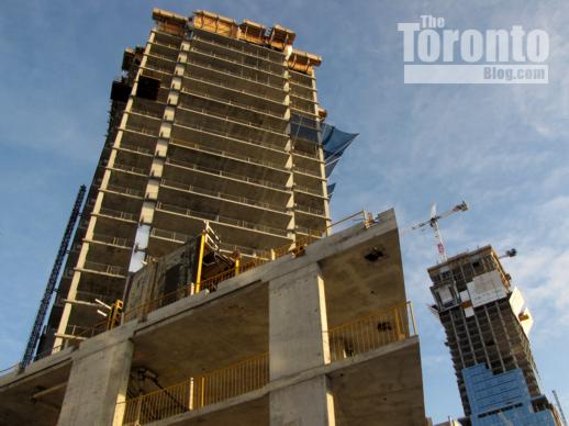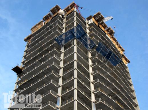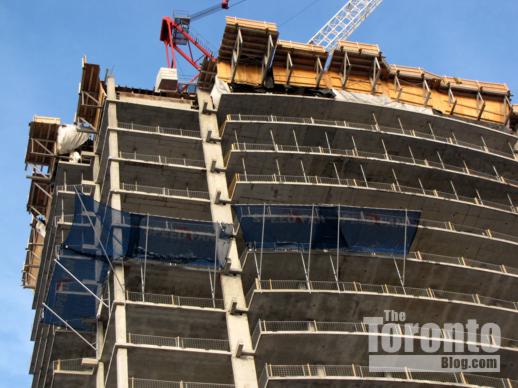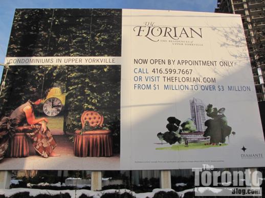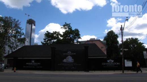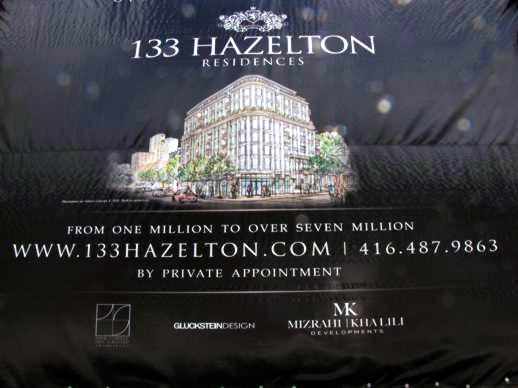 July 13 2011: Promotional signage for 133 Hazelton Residences surrounds the condo site at 195 Davenport Road, just blocks from the new Four Seasons Hotel + Private Residences Toronto (left rear).