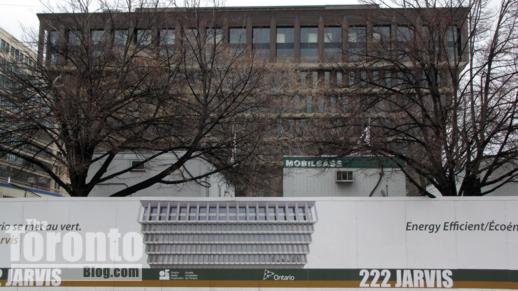 March 22 2011: A sign on hoarding lining the sidewalks around 222 Jarvis Street. Renovation and retrofitting of the 455,000 square foot edifice commenced in late 2009 and is expected to conclude sometime this fall. Government workers could begin moving into the building as early as December.