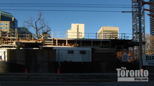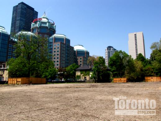 May 4 2011: Demolition progress viewed from the groundbreaking ceremony location, looking west toward the enormous Rogers Communications building
