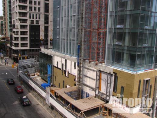 July 13 2011: Ground-level view of the amenities wing at Bay & Scollard Streets