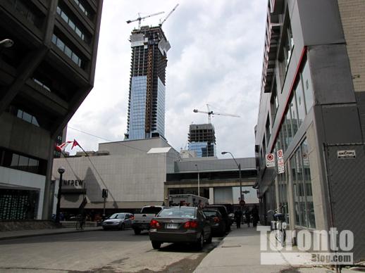 May 5 2011: Construction of the 55-storey Four Seasons Hotel + Private Residences west tower viewed from Church Street near Park Road