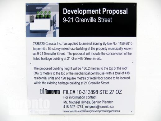August 15 2011: The sidewalk closure sign at the corner of Bay & Grenville Streets