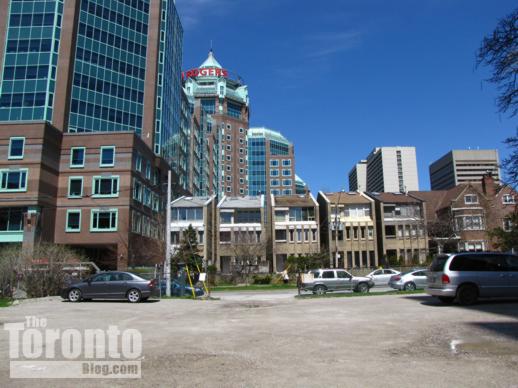February 23 2011: The huge Rogers Communications head office sits at left rear; the Greenwin Square apartment and office towers on Bloor Street stand at right