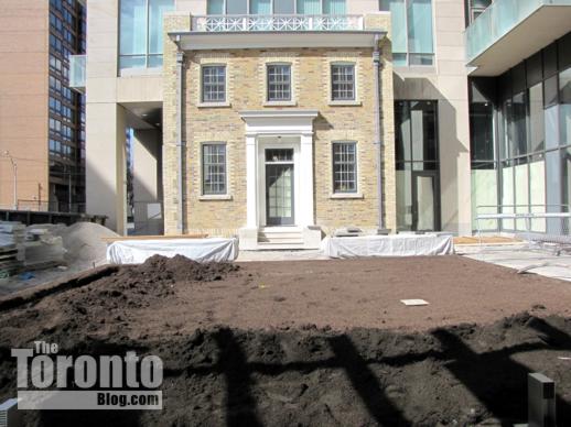 April 1 2011: The brick facade of the studio of noted Toronto architect John Lyle (1872 – 1945) has been incorporated into the courtyard off Bedford Road.