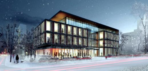 This rendering, provided courtesy of KPMB Architects in Toronto, illustrates a southwest winter view of the new offices to be built at Huntley & Isabella Streets for The Elementary Teachers’ Federation of Ontario (ETFO) …