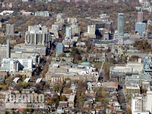 CN Tower view of One Bedford (upper right) overlooking the University of Toronto