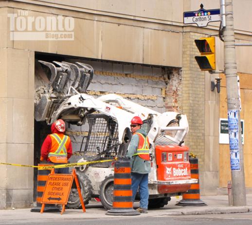 November 20 2011: Work continues on the Carlton Street marquee. The entrance to the Ryerson University Athletics Centre will be here.